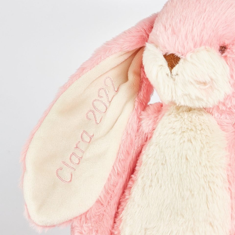 Say hello to our Sweet Floppy Nibble Bunny – Big Apple Edition! This 16 cream bunny is here to hop into your heart with its unbelievably soft tan fur and irresistible charm. With a hand-embroidered face. rosy. pink cheeks. and a big fluffy tail. this plush bunny is perfect for endless snuggles and cuddles.